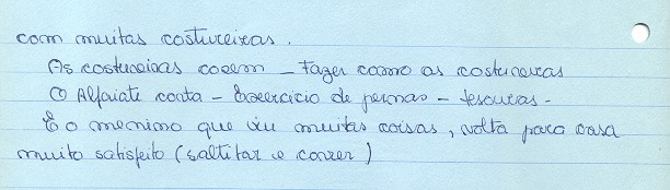 É sobre o Vestuário e está organizado para ser desenvolvido ao longo de três semanas, com 20 crianças de cinco e seis anos de idade, provenientes de meio popular. Os sub-temas semanais eram:
